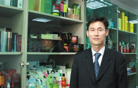 소망화장품이 이윤의 30%를 기부하는 사회공헌으로 화제가 되고 있다. 서울시 양천구 목동에 위치한 소망화장품 본사에 있는 강석창(51) 대표의 방은 한쪽 벽면이 화장품 진열장으로 가득 차 있었다. 소망화장품은 '꽃을든남자', 한방화장품 '다나한' 등을 선보인 국산 화장품 브랜드다.- ▲ 소망화장품 강석창 대표는“좋은 일을 하는 것을 목적으로 창업했기 때문에 직원들도 수익의 30% 기부에 대해 찬성하고 있다”고 말했다.